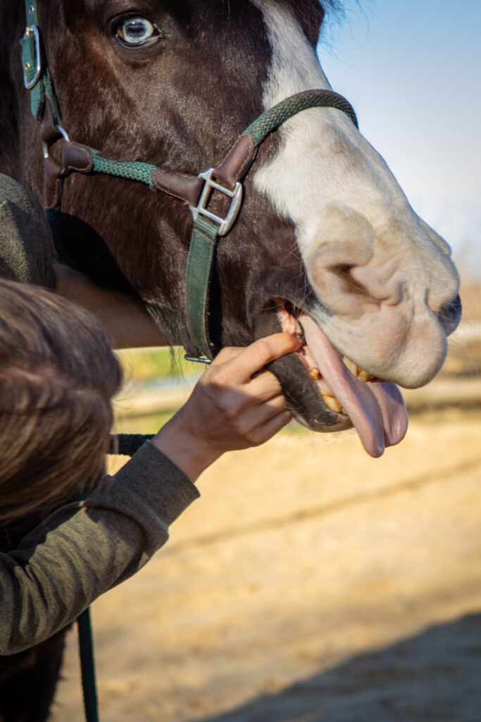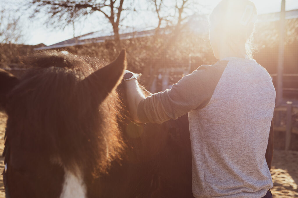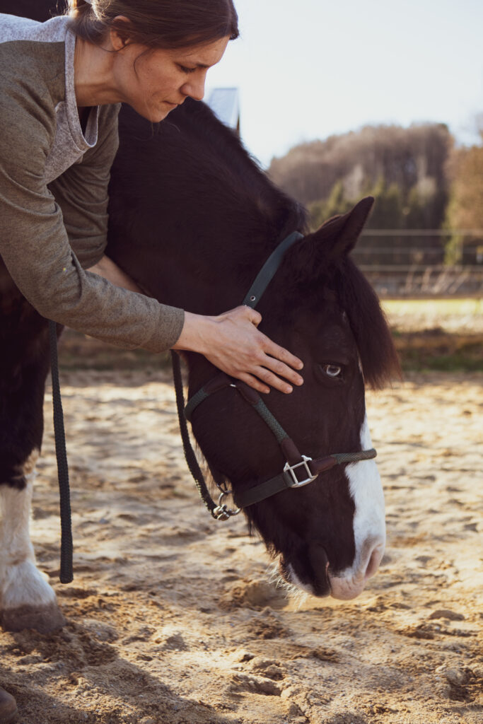 Anschließend erfolgt eine gründliche allgemeine Untersuchung Deines Tieres – vom Ansehen und Abtasten bis zum Abhören und einer einfachen Lahmheitsuntersuchung. So entsteht ein erstes objektives Bild vom körperlichen Zustand und eine Einschätzung ob ein Tierarzt hinzugezogen werden muss.